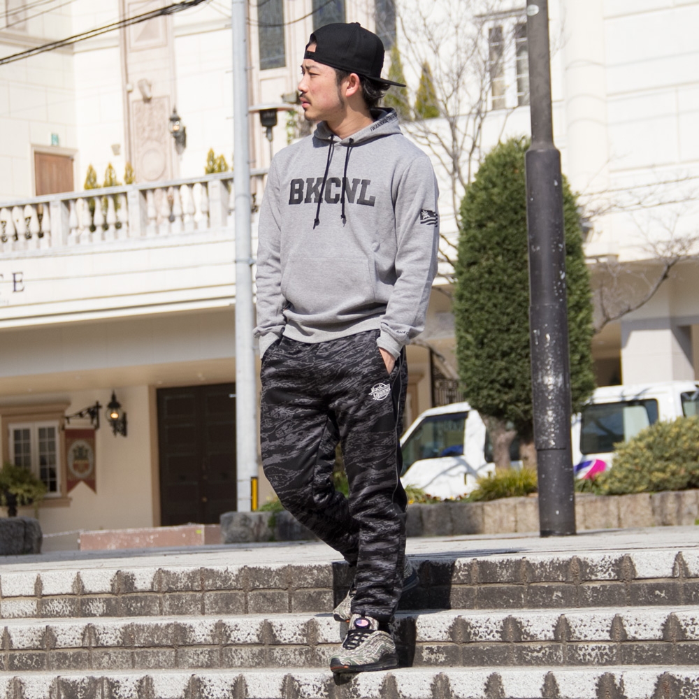 コーデュラ素材を使ったパーカーにトラックパンツでカッコよさ、動きやすさ◎