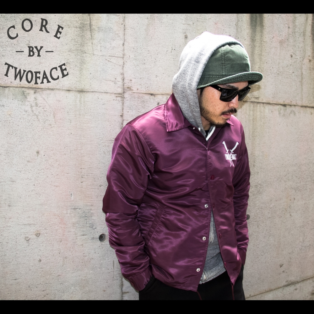 CUTRATEから発売中のコーチジャケット。淡いバーガンディーカラーが魅力的な一枚。ブラックやグレイなどでシックにまとめるのもありですがカラーを入れていって春ぽく着こなすのもオススメです。